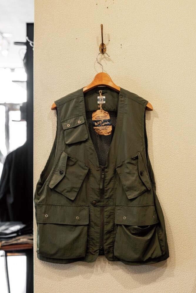 堅実なブランドセレクトが同店の魅力。「マスターアンドコー」のショーツ(写真上)、「アーミーツイル」のパイロットベスト(写真下)など。