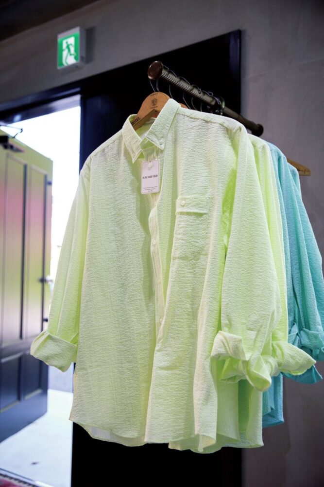 アメリカのシャツメーカー「インディビジュアライズドシャツ」へ別注したライトイエローとターコイズブルーのシアサッカーシャツ。各3万8500円