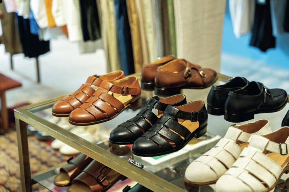 夏のトラッドスタイルに欠かせないグルカサンダルなど、「フラテッリ ジャコメッティ」の革靴は20型以上のラインナップを誇る。