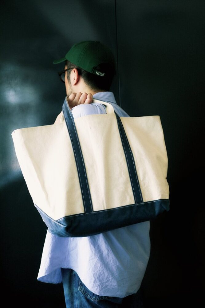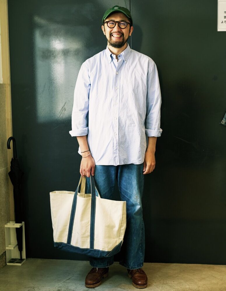 柳さんは、今年、誕生から80周年という歴史あるボート・アンド・トート(通称ビーントート)を愛用。王道を行く超スタンダードアイテムを、シンプルに合わせるのがいまの気分だという。
