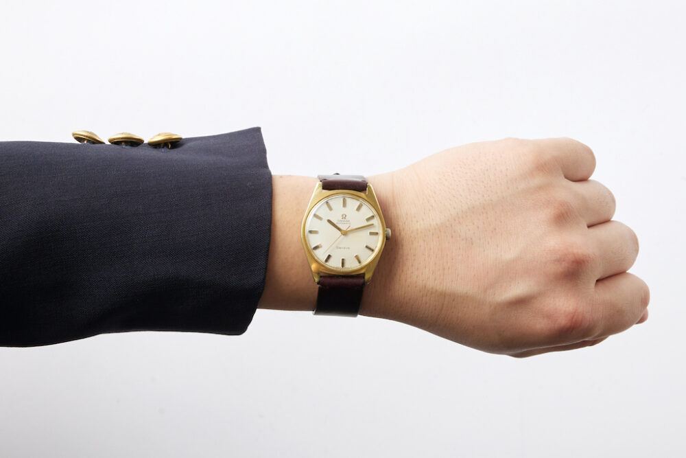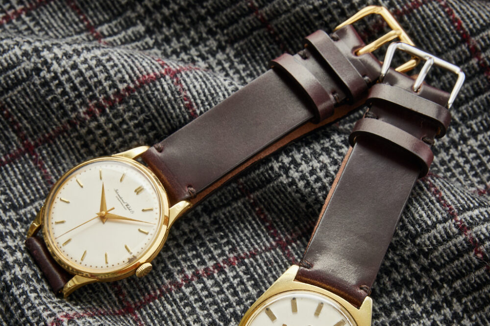 編集部の私物であるヴィンテージの「オメガ」に換装してみた。新品の状態ではまだ革は少し硬い印象だが、使うほどに腕に馴染んでくる。何より、ヴィンテージウォッチの風合いと光沢のあるバーガンディのコードバンは相性抜群。
