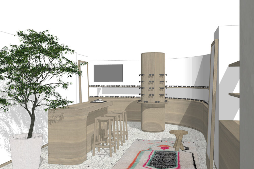 アクティブシーンで活躍するアイウエアブランドの魅力をプレゼンテーションする場所として、現代の多様なライフスタイルに合わせ、居心地のいいコンテンポラリーな空間になっている。