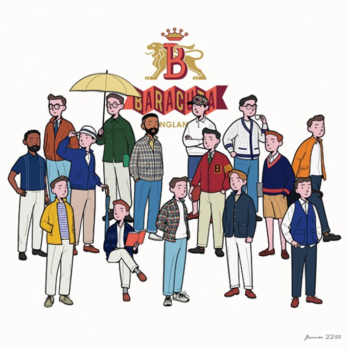 〈バラクータ〉、〈グローバーオール〉、〈クラークス〉など名だたる英国トラッドブランド勢からも、コレクションやキャンペーンのビジュアル制作を依頼されている。そのほか英国の〈ペインタージャケット〉や〈パーシバル〉、デンマークの〈アン アイビー〉や香港〈グロサリー〉など、世界中のファッションブランドがアーロンのイラストを求めていることは自明だ。