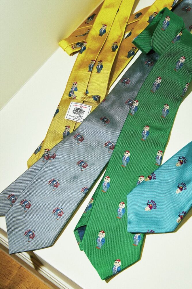 上品なシルク100%の生地全面に愛らしいキャラクターがあしらわれ、キャッチーな印象に仕上げたレップタイ。イラストは細かくジャカード織りで表現され、極めて完成度の高い逸品。各1万3200円
