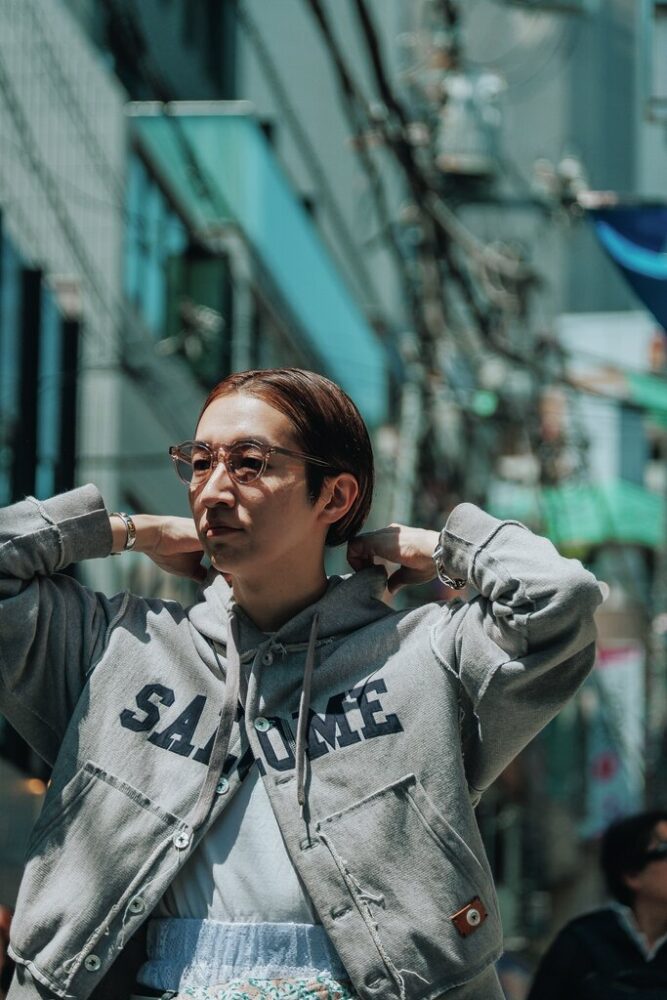 上の写真でかけている[malcolm]は、これまでクリアフレームに苦手意識のあった僕でも違和感なくかけられた一本。ストリートミックスを小綺麗に合わせた繊細なコーディネイトを、このクリアフレームが表してくれていると感じ、合わせてみました。