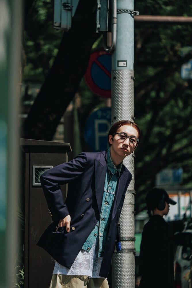 「メガネは、アクセサリー感覚でかけることが多く、『その日のスタイリングを盛り上げてくれる』もしくは『分かりやすいスタイリングに違和感を与える』。この2つの基準で選んでいます。〈ティバルト〉はスタイリッシュなのに遊び心があって、そんな僕にぴったり。