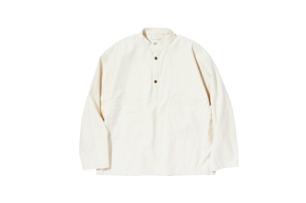 1950年代イタリア海軍のスモックがベースになったデザイン。横一文字のフロントポケットが特徴のプルオーバーシャツ。1万4300円