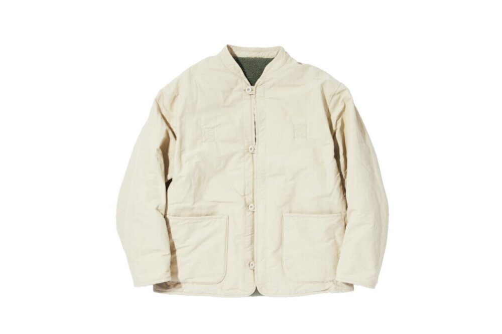 50年代に存在したスウェーデン軍のライナーから着想を得たフリースとコットンナイロンのリバーシブルアウターは昨季の人気デザインをアップデート。インナーにニットやスウェットもレイヤードしやすいサイズ感に改良している。クリーンで洒落感のあるアイボリー×カーキの配色が今季の人気カラー。2万2000円。