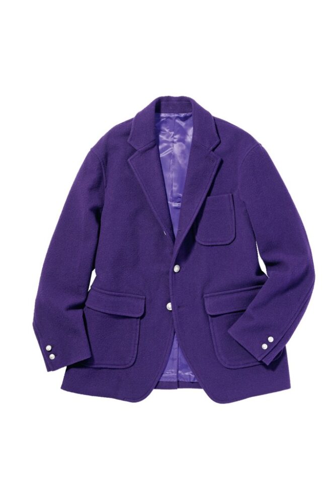 肉厚なウールモールスキン素材を使用した重厚感が特徴の「ニードルズ」の新作ブレザー。パープルのカラーやシルバーのメタルボタンがエレガントなムードを醸し出す。普通のブレザーでは物足りないあなたにオススメの1着だ。8万6900円(ネペンテス TEL03-3400-7227 https://onlinestore.nepenthes.co.jp/collections/needles)