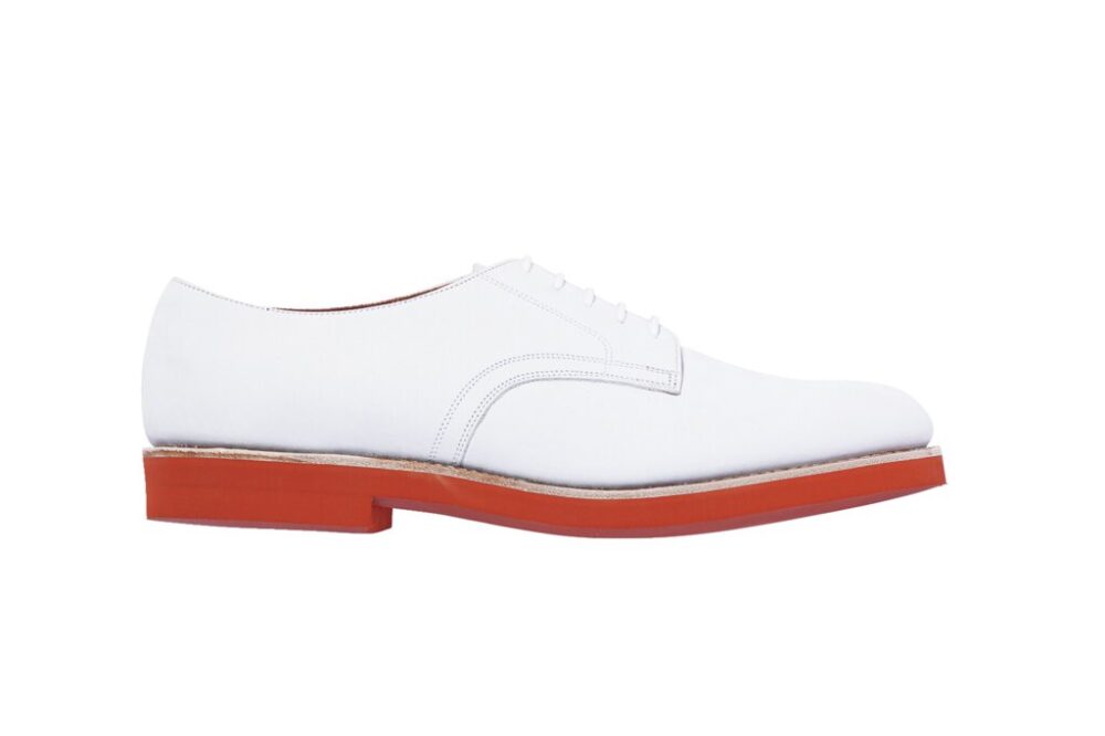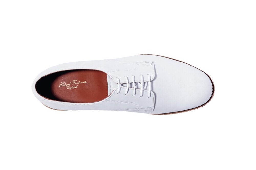 レンガ色のブリックソールが特徴的なホワイトバックスを、英国製の堅牢な靴作りに定評のある〈ロイド フットウエア〉が製作。アイビールックの定番靴をボリュームを抑えた英国的なシルエットで再構築したまさに唯一無二の1足だ。4万9500円(ロイドフットウエア 銀座店 TEL03-3561-8047 https://lloydfootwear.com)
