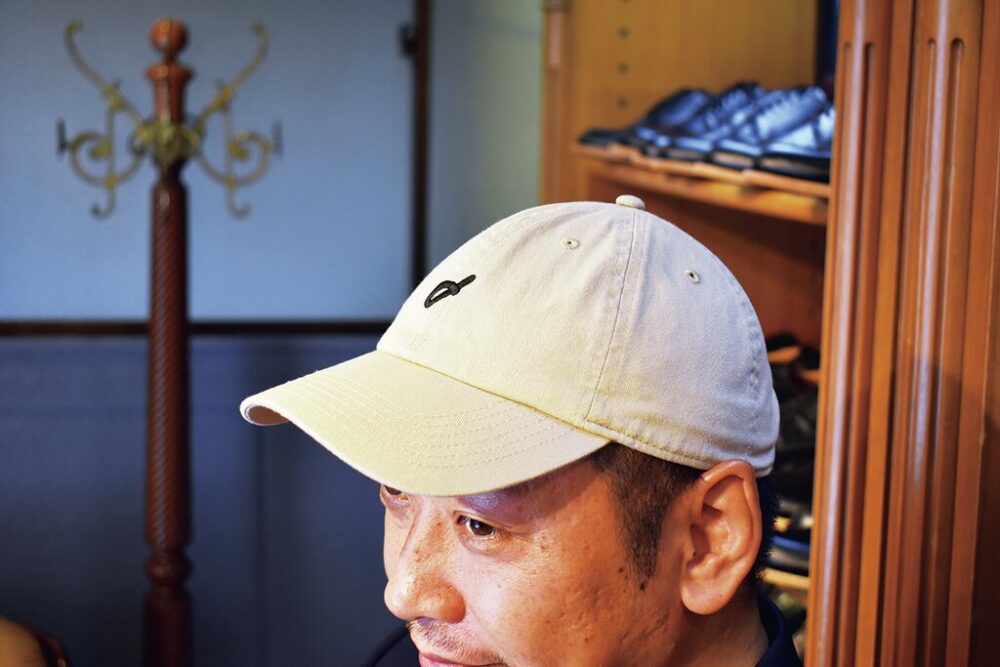 なんでも靴磨き選手権大会の打ち上げで会話から生まれたブランドなのだそうで、「〆taroの“〆”は飲み会での1本締めから来ています。刺繍は、アメトラの定番であるカレッジロゴではなく、あえて漢字を入れてほかにない雰囲気のキャップを目指しました。道端で外国の方に『それはどこで買えるんだ?』と聞かれたこともあります(笑)。