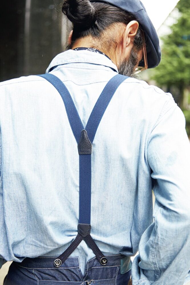 私はいくつかデニムブランドを手掛けていますが、昔の仕様ではそもそもベルトループはなく、サスペンダーボタンが付いてますしね」参考商品(真下商事 TEL03-6412-7081)