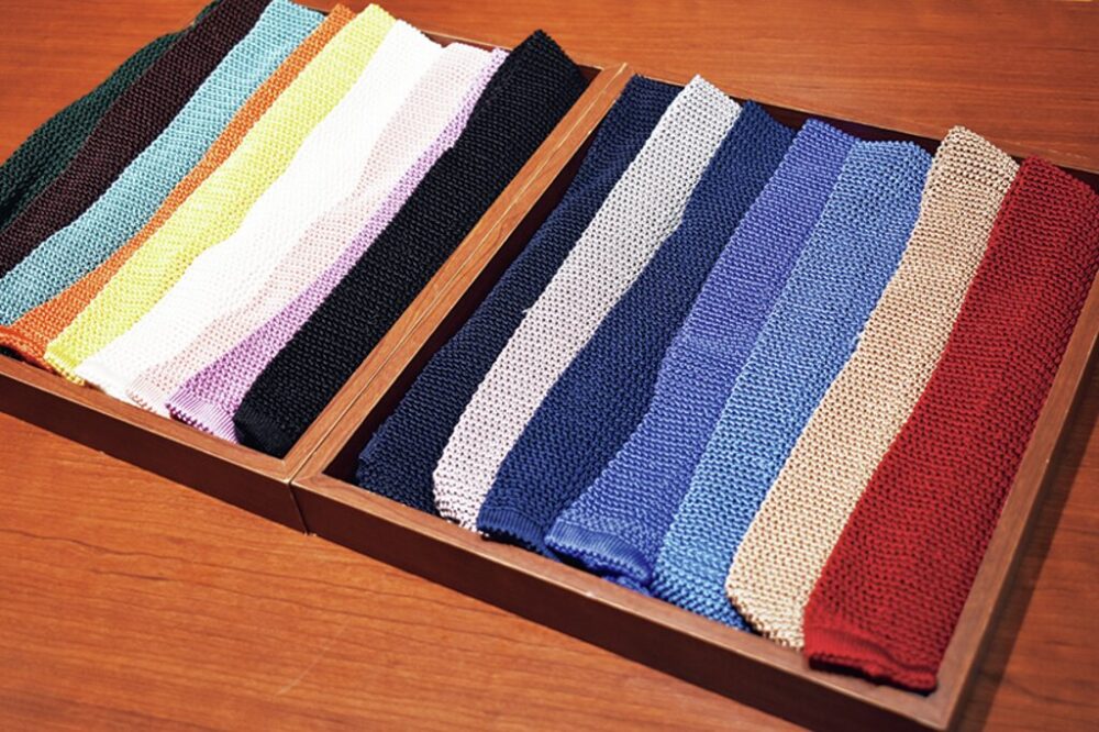 麻布テーラーのニットタイ。麻布テーラー/篠塚剛さん