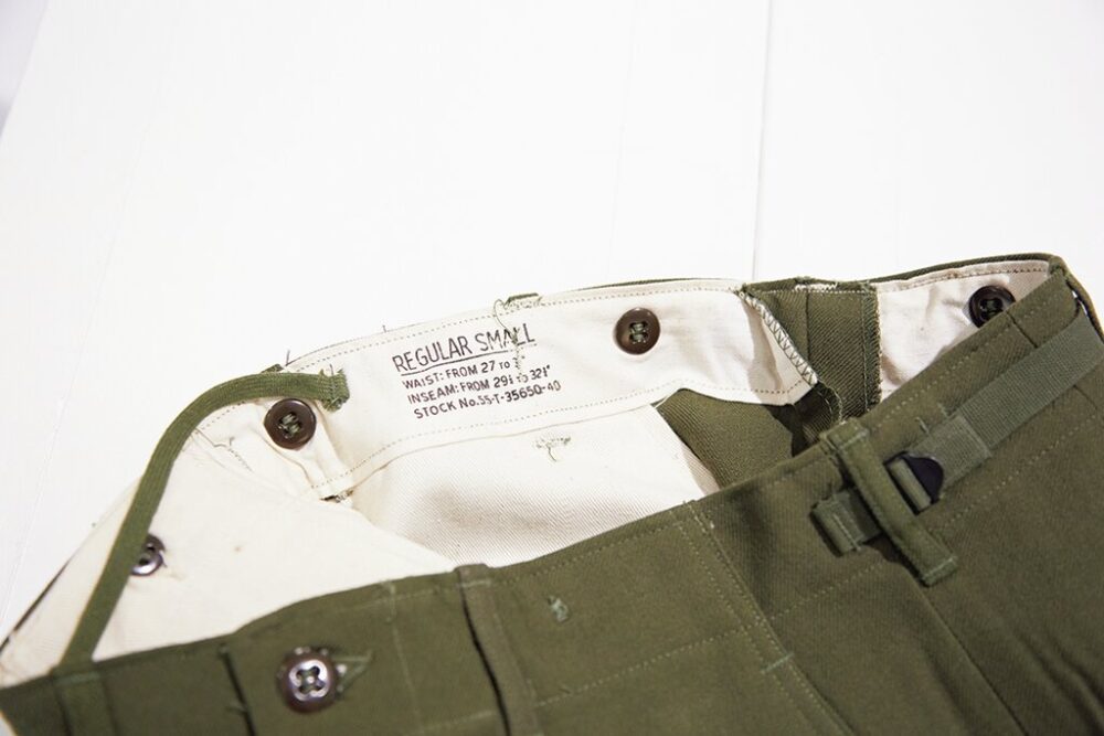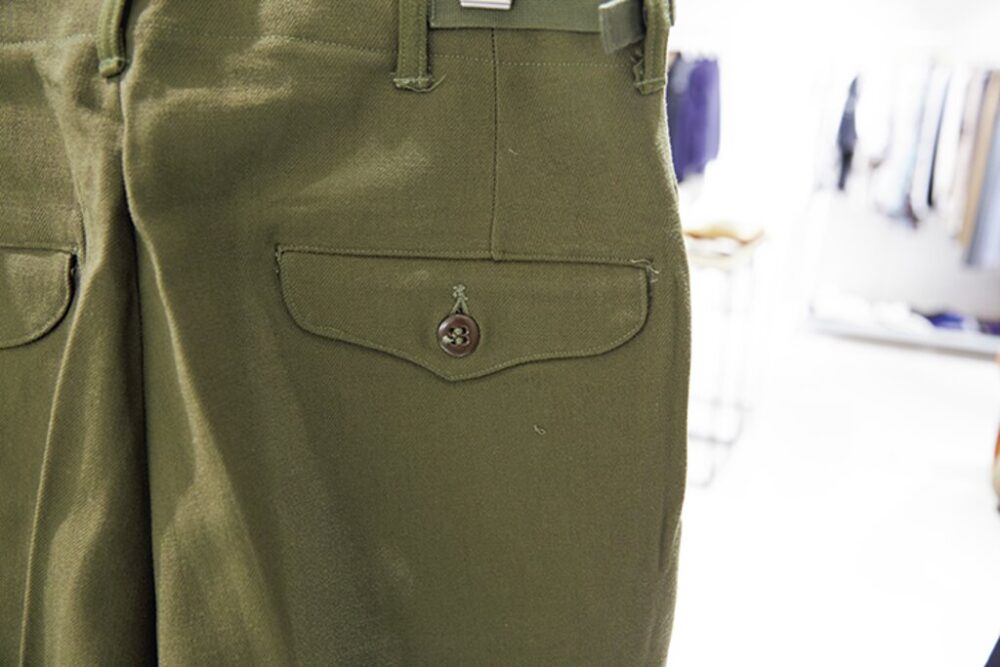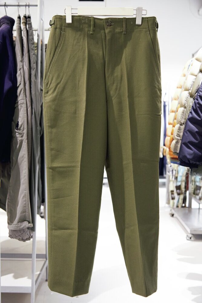 ミリタリーに対して異常に造詣の深い大畑さんが、「いま買うなら」と激推しするヴィンテージがこれ。「[M-51]って言うと、みんなカーゴパンツを思い浮かべるでしょ? でもどれも高騰してますし、狙い目は同じ[M-51]でもウールトラウザーズのほうなんです。まだ1万円台で買えるし。