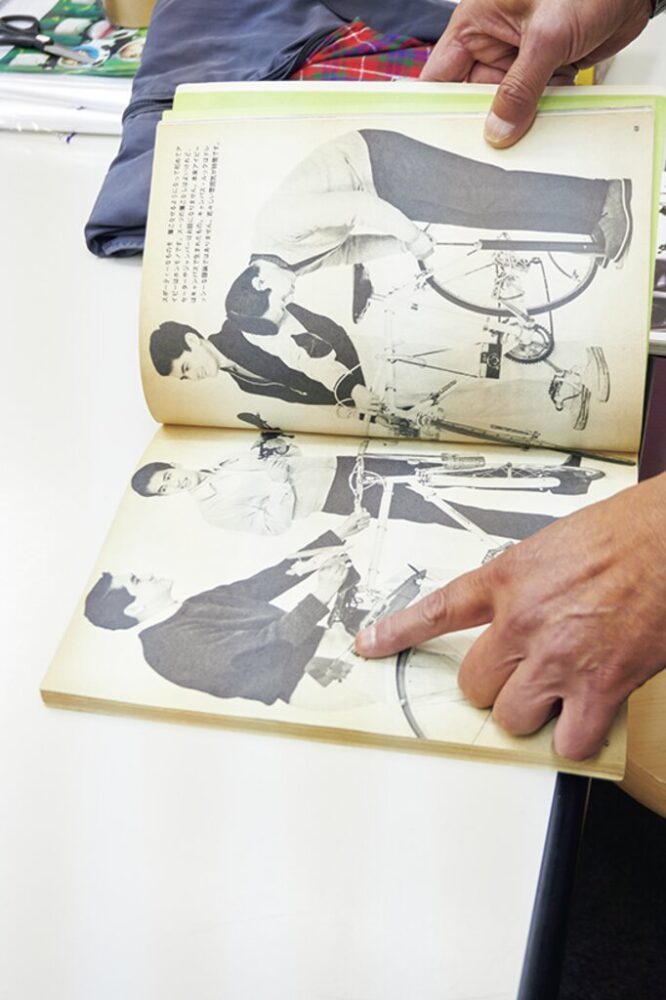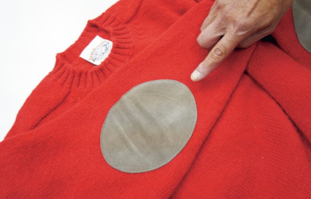 写真上/「まさしくこの写真だよ」とエルボーパッチ付きセーターを着た雑誌を見せてくれた。写真下/「アイビーなセーターはエルボーパッチ付きなら100点、その教育は抜けないね(笑)」