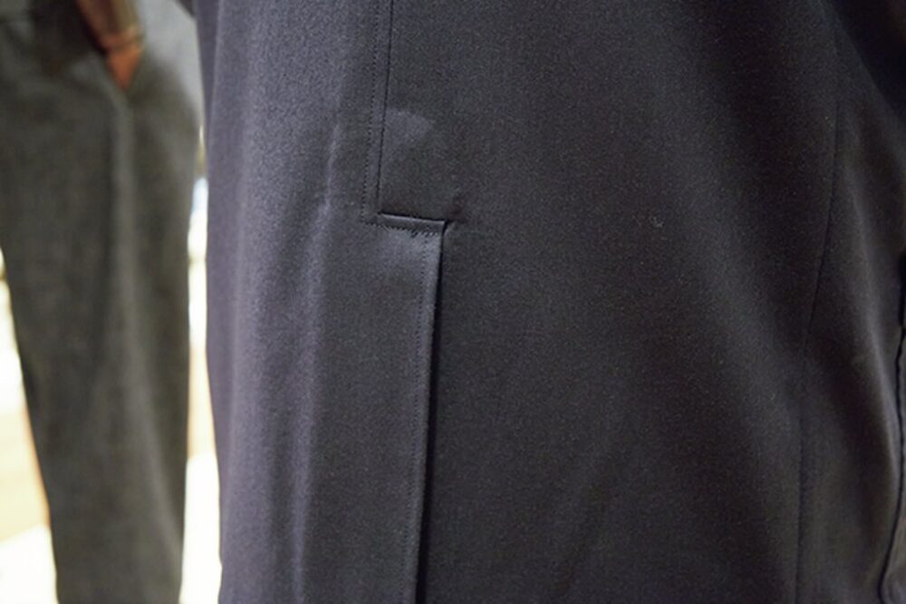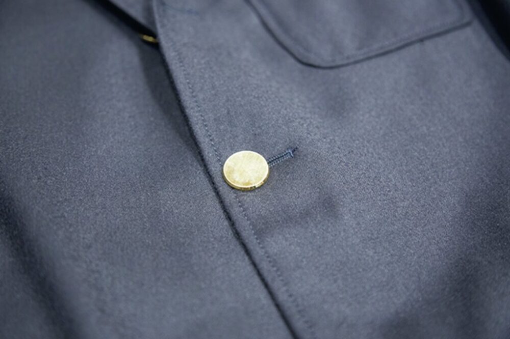 写真上/装飾を排したフラットな金ボタンが上品。写真中/フックベントなしにはアメトラブレザーは名乗れない!? 写真下/このブレザーに合わせたいパンツは? という質問で挙がった〈ケネスフィールド〉の[グルカ3]。こちらも2012年から取り扱ってる定番なんだって。