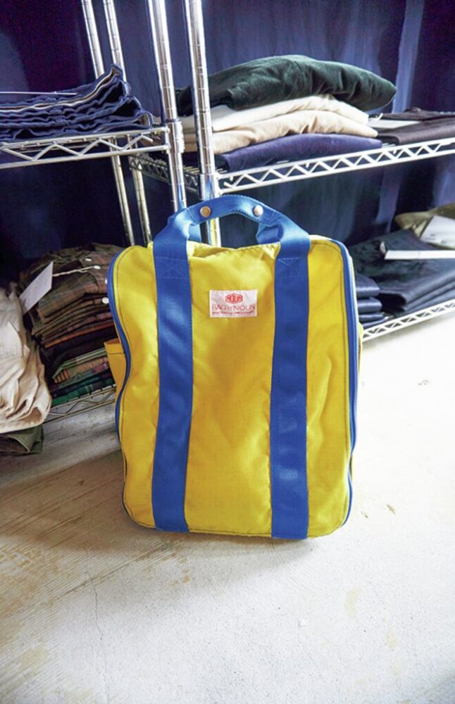 写真上/モデル名は[バリーチノ]という。写真中/自慢のヒップシルエット。「ドン臭さと上品さの絶妙なバランスを目指しました」とのこと。写真下/ちょうど東京出張中だった鈴木さん。持っていた〈ポートキャンバス〉のバッグもいい感じだ。