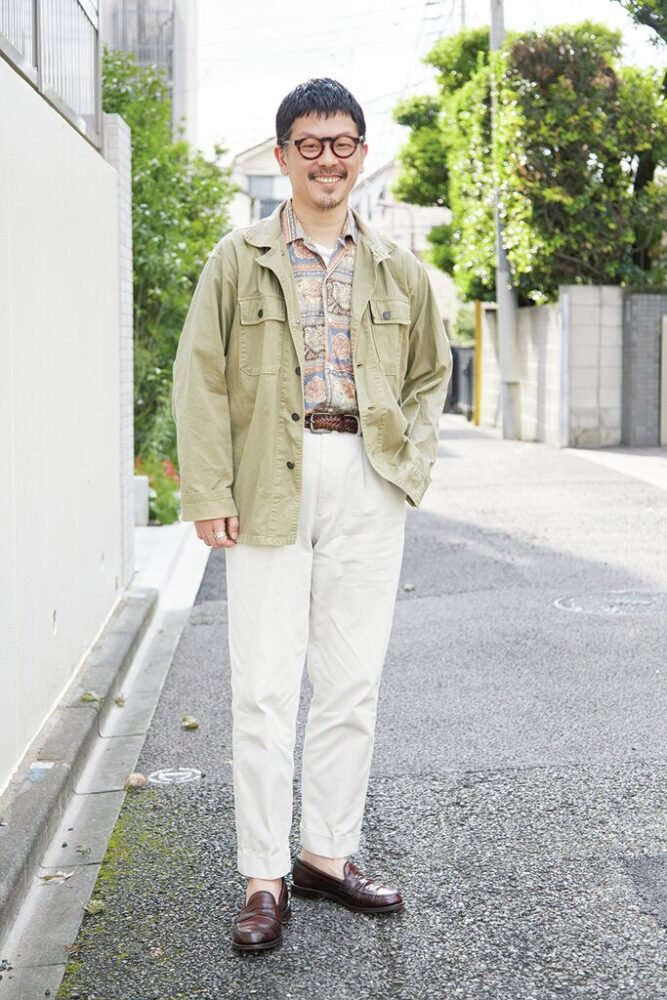 バーンストーマー × エクスプローラーの チノトラウザーズ。エクスプローラー/鈴木誠治さん