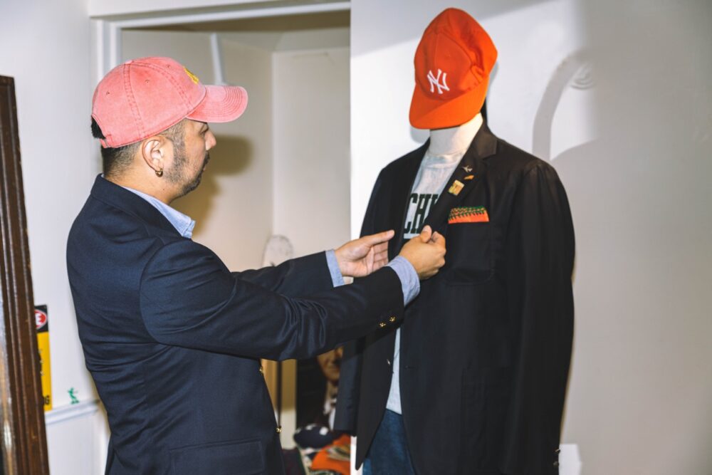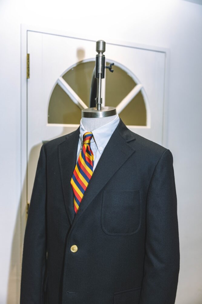 店頭では黒野が直接皆さまのお相手をさせていただきます。ライフスタイルを詳しくヒアリングしながら、最適な紺ブレの着こなし方や、最適な素材・コーディネートを丁寧にご提案します。デニムのパンツや古着など、ご自分の私物を持ち込んでのコーディネート相談にも対応。トラッドな着こなしはもちろん、自由で斬新な着こなし相談も大歓迎。J.PRESSのVMD飯野も一緒にサポートしてくれるので、紺ブレをより一層身近に感じることができます。