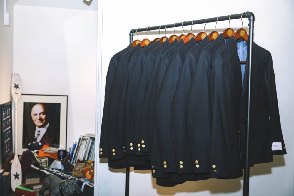 最新の「紺ブレ」コーデを実現するための私物を黒野が持ち込み、ボディにコーディネートを展開。紺ブレは、J.PRESSの定番中の定番1stブレザーやオーセンティックモデルをはじめJ.PRESS ORIGINALSのヘリテージモデルなどを多彩にラインナップ。それらに合わせて古着をミックスしたコーディネートなども多数展示します。