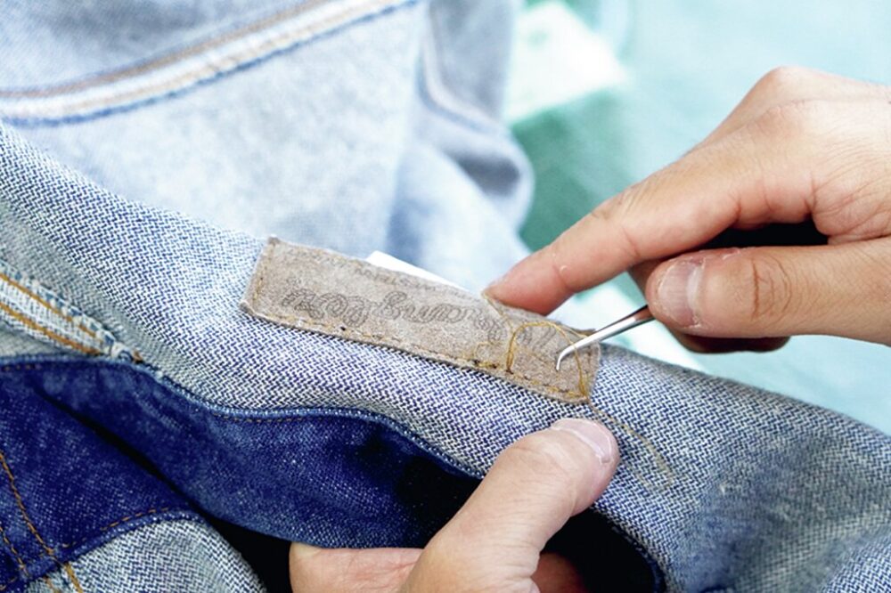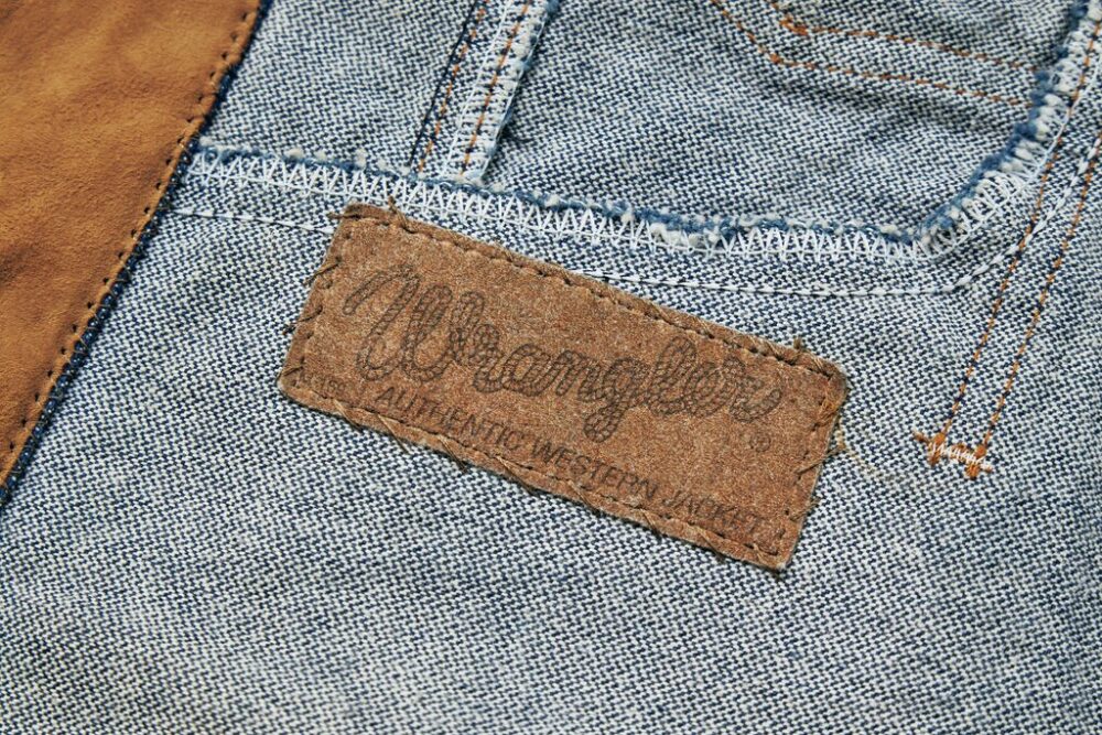 裏側に付く「ラングラー」タグを外す。他の位置に移植するので綺麗に。