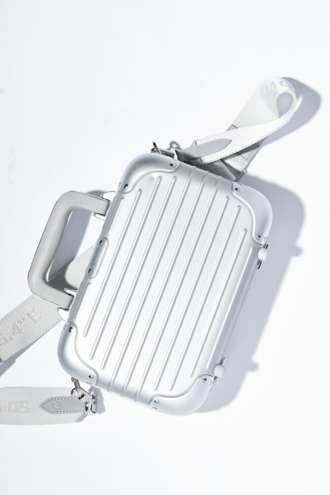 今では世の中に存在するスーツケースにおいて当たり前のように使用されている素材「アルミニウム」。その素材を世界で初めて使用したブランドは1898年から続く老舗モビリティブランドの〈リモワ〉だ。1920年代に生まれてから、同ブランドのアイコンとして続くアルミニウム製のトランク[オリジナル]。そのDNAを受け継ぐ新たなモデルが今年誕生した。ボディの素材には軽量かつ強度の高いアルミニウムを使用。本国ドイツで精巧に作り上げられ、ブランドのアイデンティティでもある丸みを帯びたシルエットやボディ全体に施された溝などハンドバッグであっても一切の妥協は許さない。取り外し、長さ調節の可能なストラップ、開閉部分には〈リモワ〉が独自に開発したボタンを採用するなど実用性も高く、普遍的なデザインも魅力。新たな歴史を刻む、逸品が完成した。サイズ:H16×W26×D8㎝。33万3300円(リモワ クライアントサービス TEL03-6733-9850)