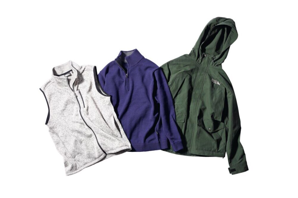 マウンテンパーカ1万6500円、ニット8800円/エディー・バウアー(水甚 TEL058-279-3045)