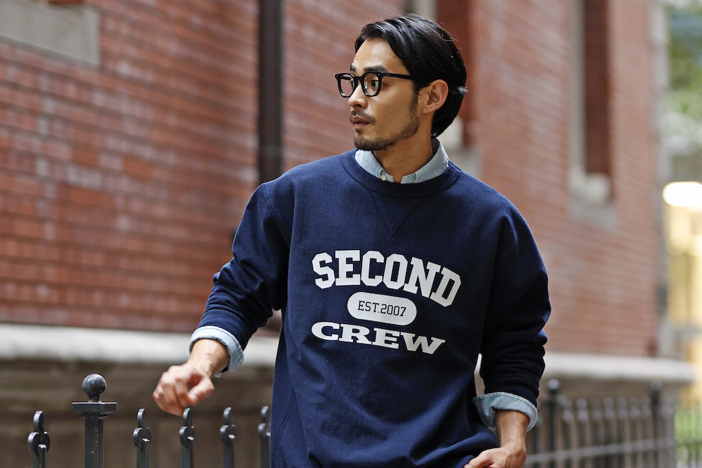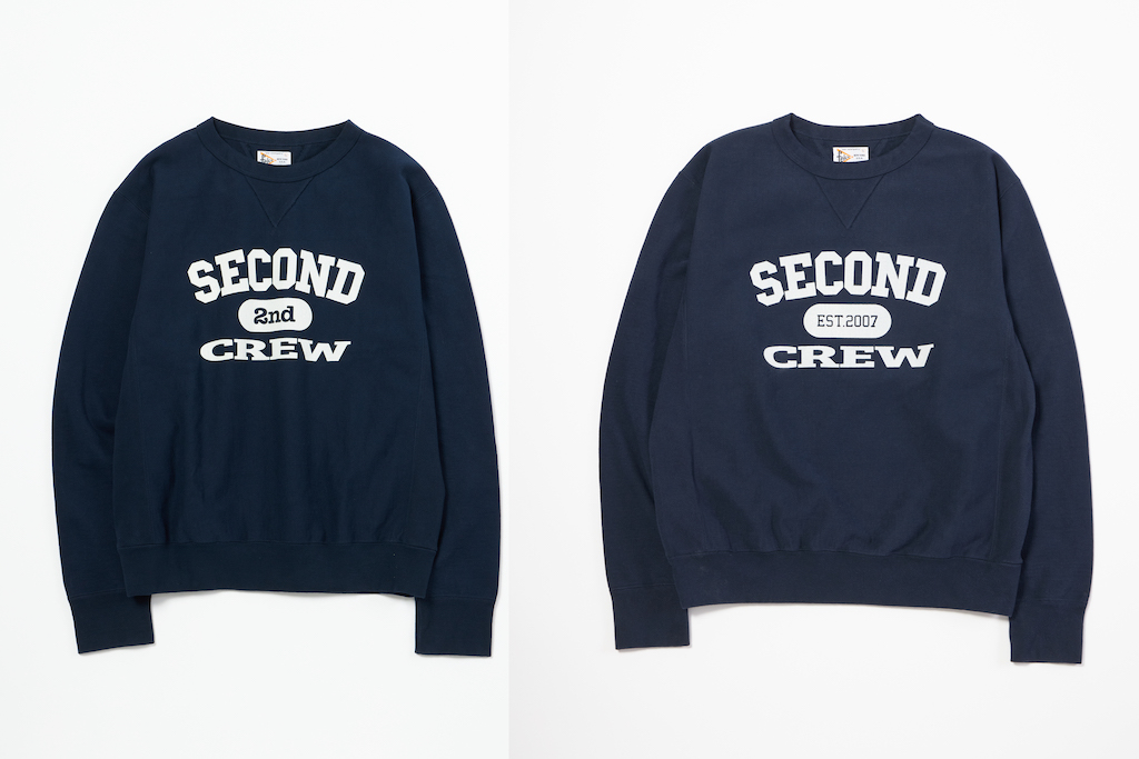 「SECOND CREW」は同じだが、真ん中に2ndの創刊年を示す「EST.2007」と、シンプルな2ndのロゴが入る2パターンのロゴをご用意。どちらもカレッジテイストに落とし込み、好みに合わせてチョイス可能! もちろん2パターン買いもあり。