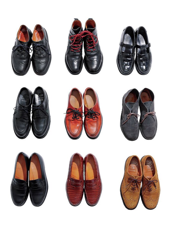 この「オールデン」の[990]を筆頭に数多くの革靴を所有する坂田さん。21歳の時にパリで購入した〈J.M.ウエストン〉の[180]に始まり、様々なブランド、モデルの革靴を購入してきた。そのバリエーションの豊富さは、次のページを見れば一目瞭然だ。