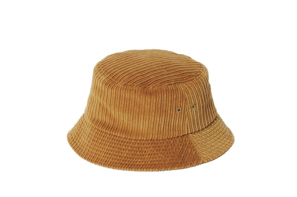 肉厚で柔らかい、コーデュロイを使用したバケットハット。太畝と細畝が交互に配されたランダムコーデュロイによる表情豊かな生地感が小物ながら存在感を持つ。9680円(マッハ55リミテッド TEL03-5846-9535)