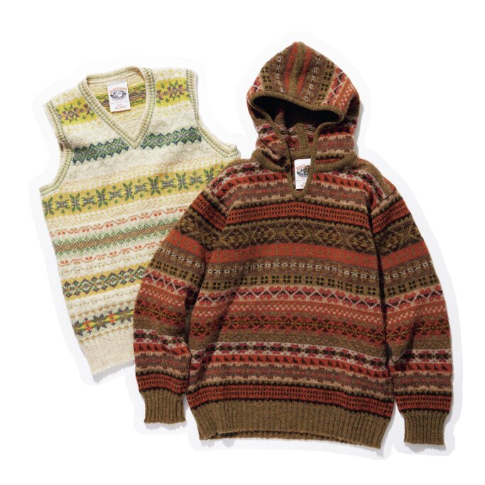今季の「ビームス プラス」は愛らしいパターンや配色のフェアアイル柄が豊作だ。こちらは「ジャミーソンズ」と安定感のあるコラボ。パーカ5万3900円、ベスト3万8500円(ビームス プラス 原宿 TEL03-3746-5851)