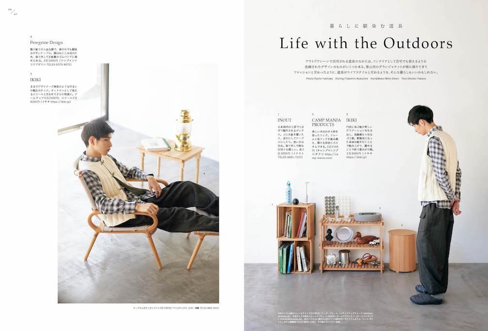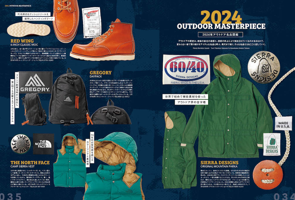 そんなアウトドアトラッドを構築するために、知っておきたいアウトドア名品やアウトドアミックスのスタイルサンプル、アウトドアギアの紹介や、日本におけるアウトドアの聖地・中目黒のショップリストなど、様々な角度からアウトドアを掘り下げてみた。アウトドアアイテムを、普段のフィールドである“街”で楽しむためのヒントが詰まった渾身の特集。この冬 の装いはアウトドアトラッドで決まり!