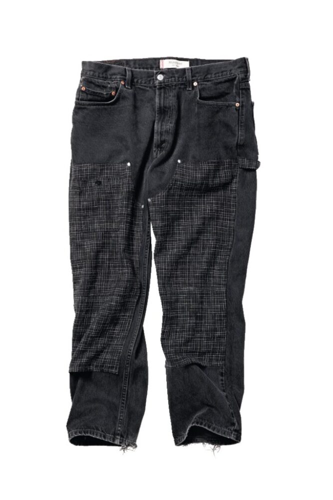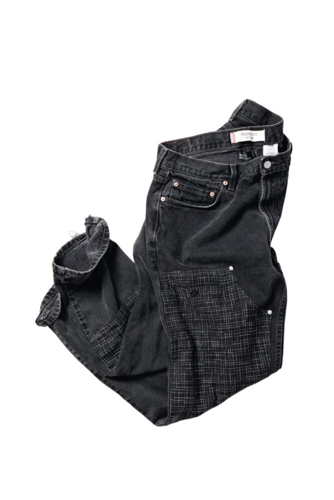 今回のリメイクは誰の家にでもありそうな普通のデニムをベースに、シャツを使ったリメイク。素材は〈リーバイス〉のブラックデニムとレーヨンリネンのシャツをチョイスした。