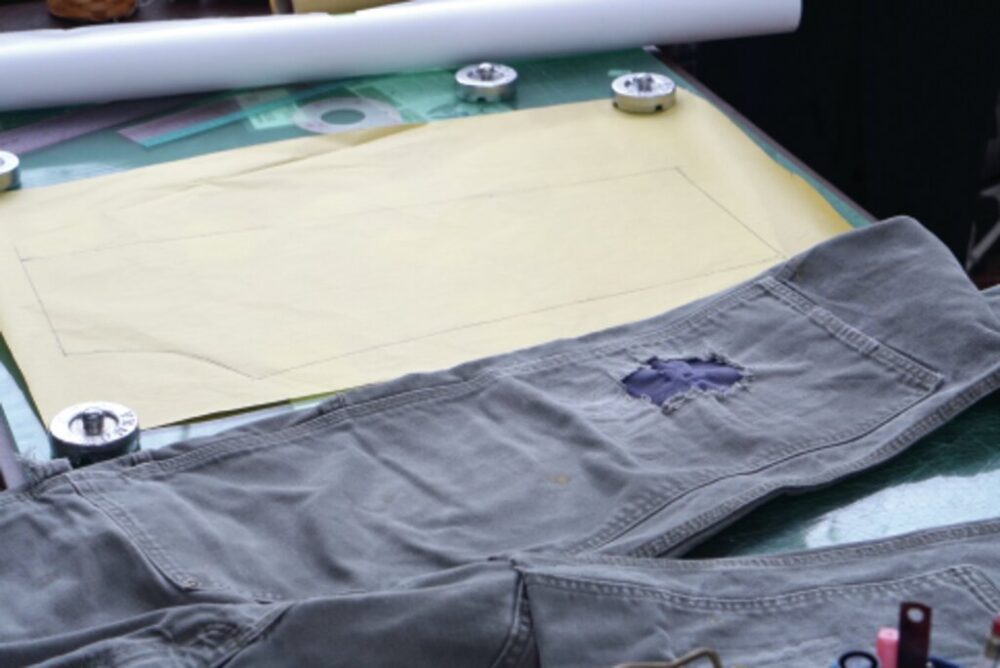ダブルニー部分のパターンを取る。今回は「カーハート」の膝を拝借。