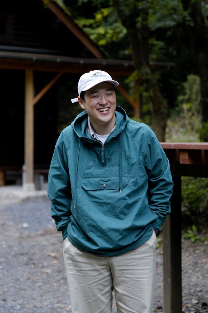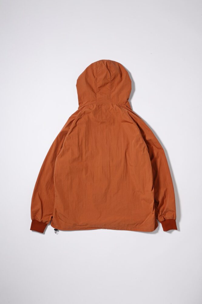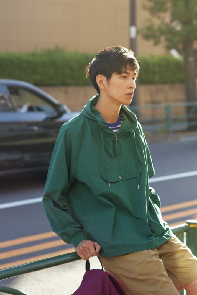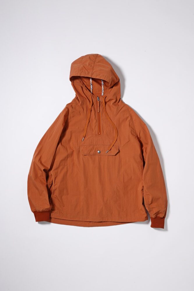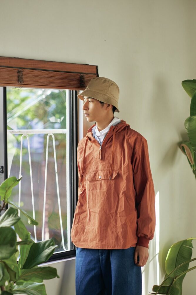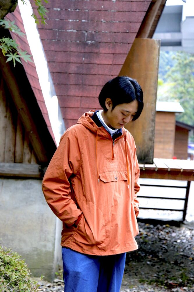 編集部が私物として所有していた「ジムマスター」のアノラックパーカ。1968年に誕生したクラシックな機能素材「ロクヨンクロス」のこなれた風合いと、ほどよくゆとりのあるシルエットが気に入っており約2年ほど愛用していた。さらに、特筆すべきはその価格の安さ。編集部が所有していたのは汎用性の高いネイビーだったが、これをクラシックアウトドアな配色、例えばグリーンやオレンジで製作すれば、幅広い人がアウトドアスタイルを楽しめるのではないか、と考えたところから本企画はスタートした。