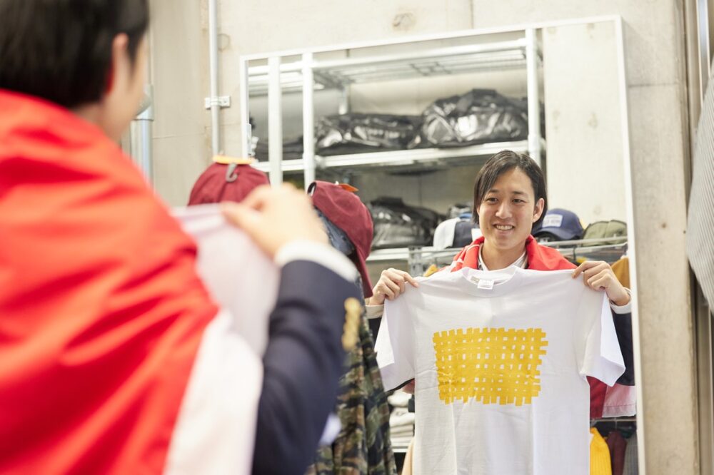 「シンプルな白Tもいいし、イエローもいいな〜。これから寒くなるしロングスリーブもいいかも! デザインが豊富で悩ましいなあ」。