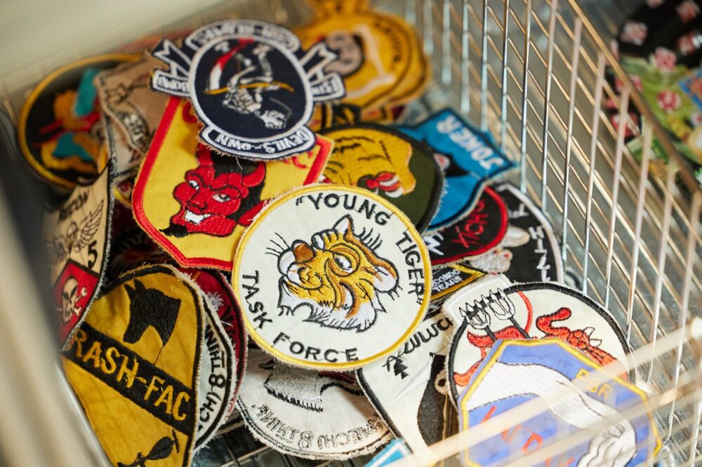 入り口から左手奥にはワッペンのコーナーが。カレッジものからオリエンタルなモチーフのものまで、様々なデザインのワッペンがズラリ。「ジャケットやパンツに付けてもよし、お土産として友達にプレゼントするのもアリですね!」