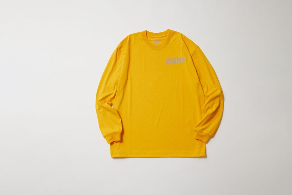 新ブランド「AIRLINE」のロングスリーブTシャツ。素材は速乾性が高く肌触りの良いポリエステル100%。ポリエステルながら高密度に織り込むことでコットンのような風合いを実現している。胸元と背面には「WAVY」のロゴが入る。下北沢店限定アイテム。8990円