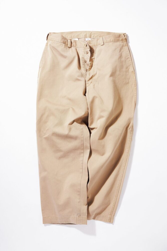 「何か新しいものを作りたいとき、ショップとファクトリーの間を繋ぐ役割を、かつては“振り屋”と呼んでいて、ぼくもそのひとりでした。メーカーとしても動いてはいたものの、ぼく自身がパターンを引いたり、縫うワケではないですし、振り屋には求められるニュアンスを具現化するための感性や経験値が何より求められる。言わば編集者のような仕事でした。シップスさんやビームスさんといった大手セレクトショップのOEMでは、パンツをメインにバティックアイテムなども手掛けましたが、やっぱり自身の屋号で作るのであればチノだろうと、90年にPt.アルフレッドというネームを初めて使い、ミリタリータイプのチノパンを制作、展開しました」。