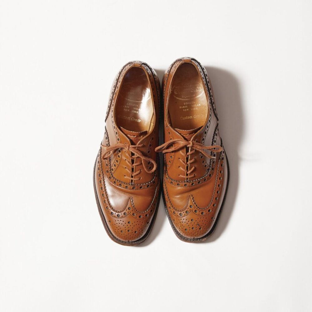 右上/チャーチのウイングチップ。光沢のあるガラスレザー、ダブルソールなど雨の日のスタイルにも適したディテール