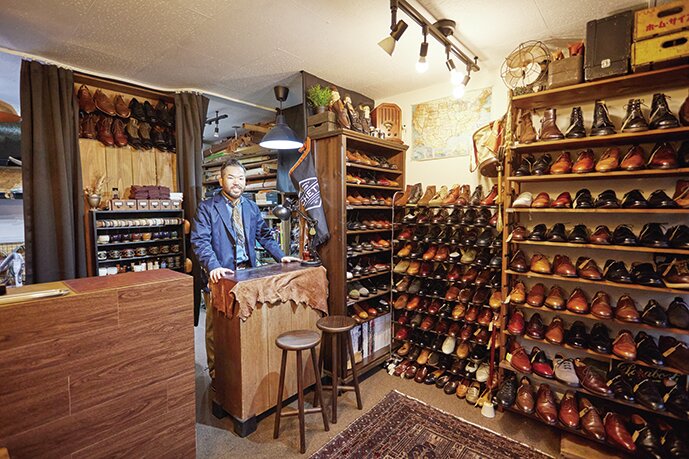 西武新宿線・中井駅から徒歩5分のところにある古靴店。英国、アメリカ、イタリアなど世界各国のヴィンテージシューズを取り揃える一方で、シューシャインやシューリペアなどのメインテナンスも受け付けている革靴好きには堪らない名店