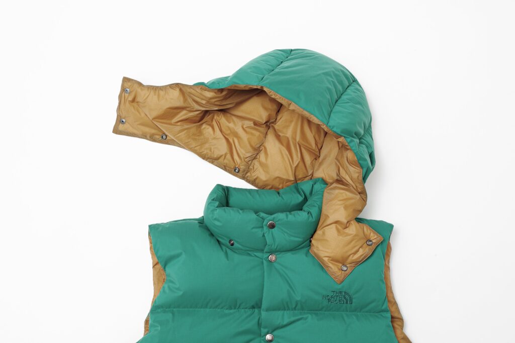 1970年に発売された「シエラパーカ」の、ベスト型として登場した「キャンプシエラベスト」。配色も往年のモデルに近い、70 年代の雰囲気が感じられるグリーンを採用していながら、現代的にアップデート。薄く、軽いリサイクルダウン、撥水加工を施したナイロン素材、裏地には滑りの良いリップストップナイロンなど形は変えず進化し続けている。4万700円