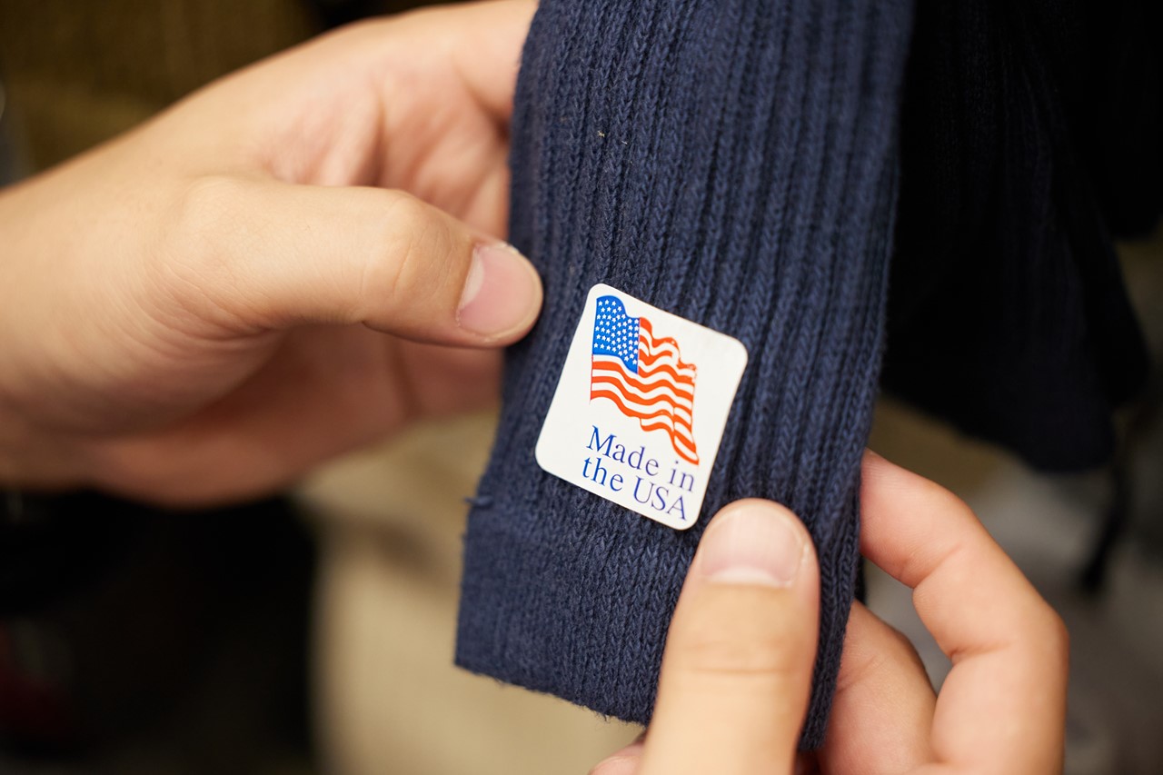 「なんてことのないソックスなのかもしれませんが、このアメリカ製表記がついているだけでテンションが上がってしまいます。星条旗ってなんでこんなに格好いいですかね!」はやくもふたつ目のアメリカ製を見つけ、大興奮だ。
