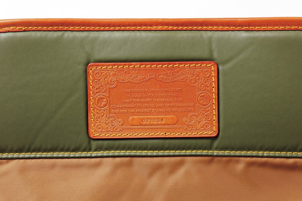 「ハンティングワールド」と言えば「バチュークロス」という生地の話。ベース生地、ウレタンフォーミング、ナイロンジャージの3 層構造に加えて、このベース生地にも6層のポリウレタンコーティングを施しており、撥水・防塵性が高く、軽く、衝撃保護にも優れている。1972年に初期モデルが制作されてから、クラシックな見た目も大きく変わることなく今日まで続く。21万4500円