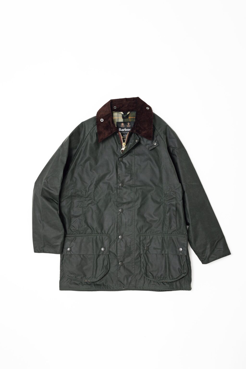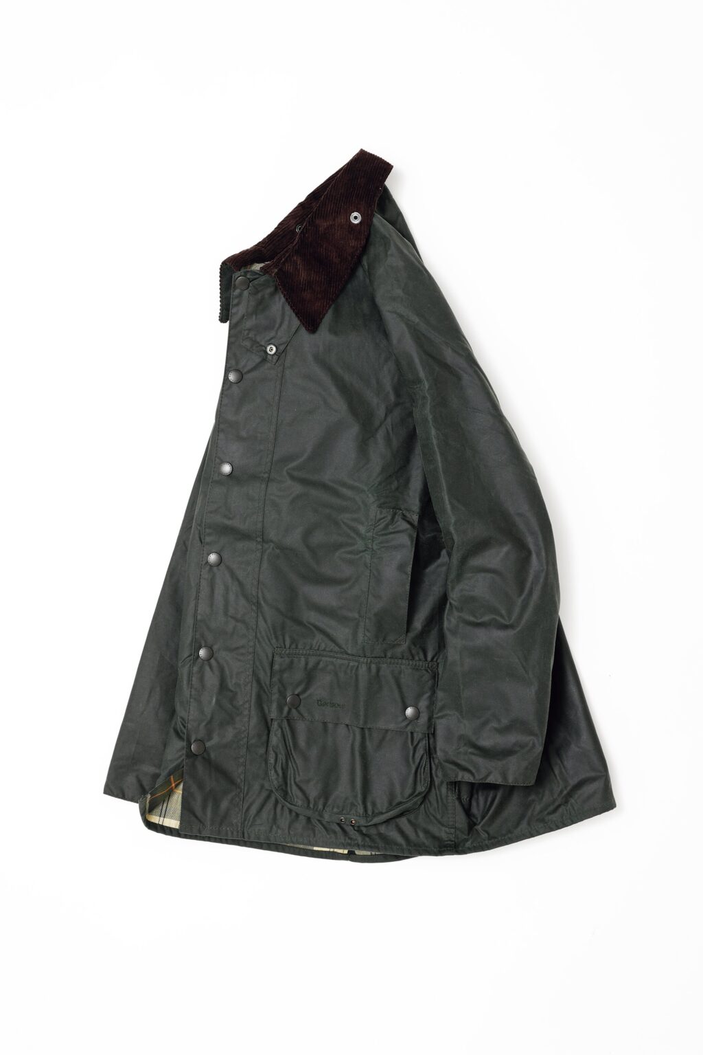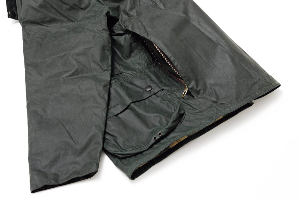[ビデイル][スペイ]に続き、1983年に誕生したハンティング用アウターが[ビューフォート]だ。動きやすさを担保するラグランスリーブ、大ぶりのリング型ジッパーは先述の2モデルと同様。英国では狩猟時も着用されることの多かったジャケットが隠れる長めの着丈、獲物を入れるため背面にあしらわれた大きなゲームポケット、薬莢が収納できるようマチを広くとりボタンを付けて中身が飛び出さないようにしていたというフラップポケットなど、ハンティングウエアらしい機能も随所に見られる。6 万9300 円