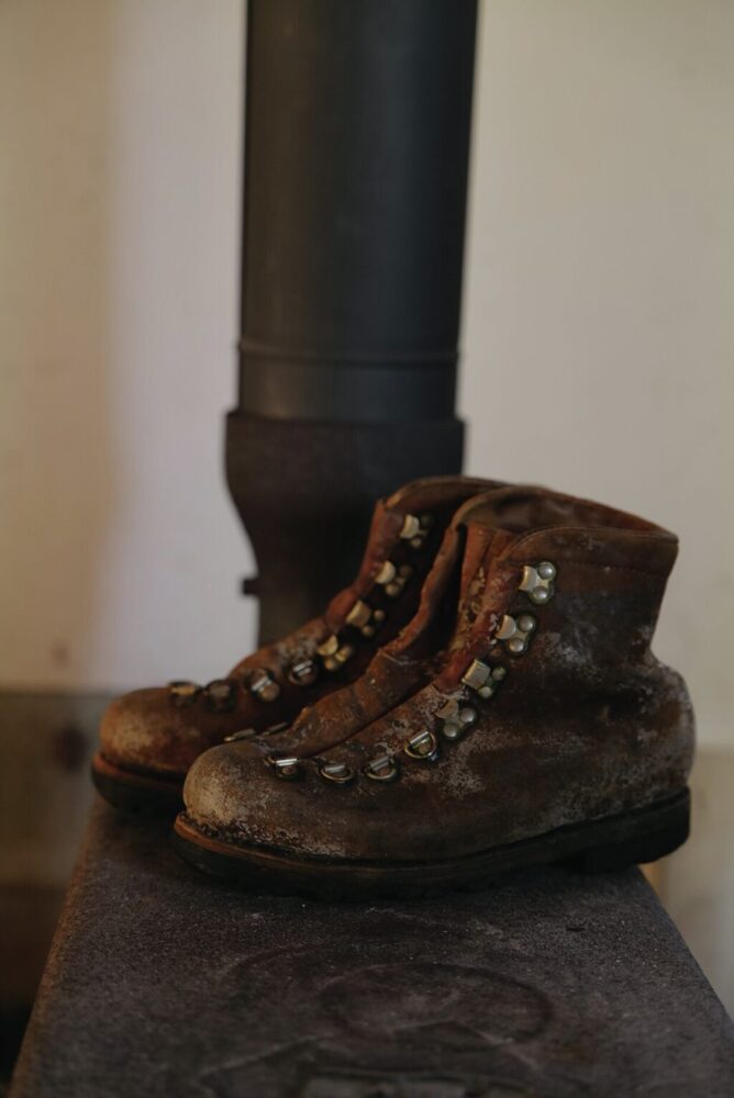 1960年代まで、一流の山道具といえばフランス製しかなかったと語る小林さん。アメリカに山登り文化が存在することを知ったのも、1970年代に入ってからだった。こちらはガリビエールのマウンテンブーツで、当時「スーパー・ガイド・モデル」と呼ばれていたそう。