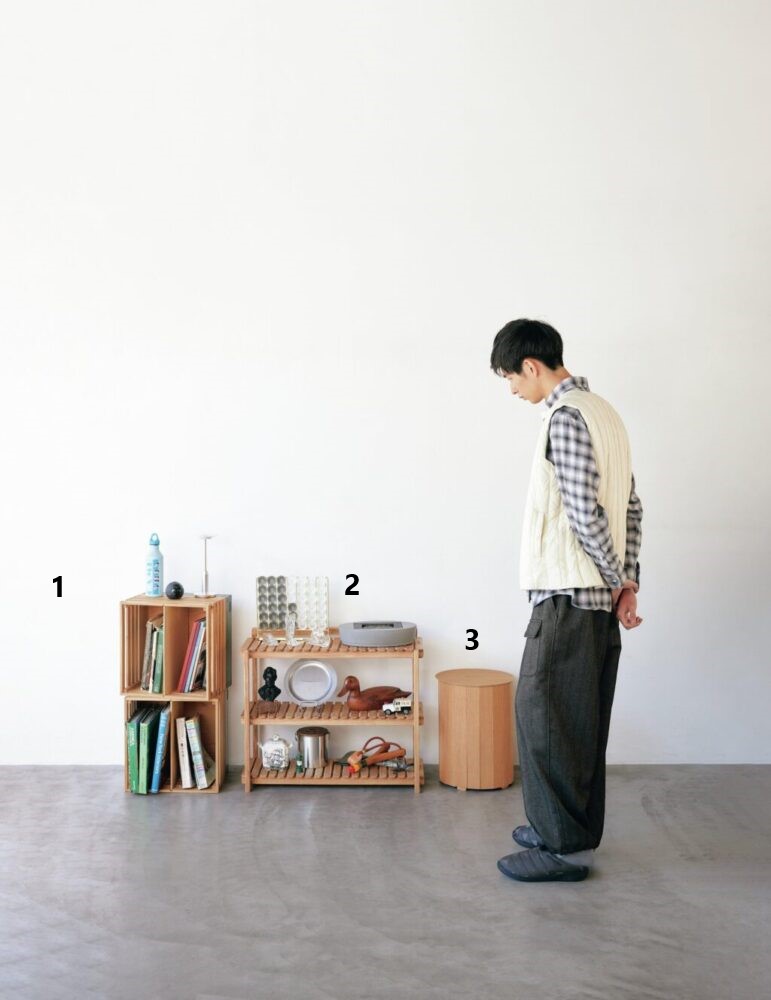日本国内の工房で1点ずつ製作されるボックス。上に天板を置いたり、逆さにしてテーブルにしたり。使い方は自由。取り外し可能な仕切りも嬉しい。各3万3000円(イナウトTEL03-6661-7227)