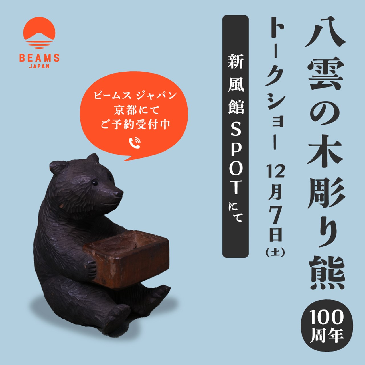 さらに、木彫り熊に精通する『東京903会』の安藤夏樹氏と『八雲町木彫り熊資料館』学芸員の大谷茂之氏、「BEAMS JAPAN」クリエイティブディレクターの鈴木修司によるトークイベントを開催する。