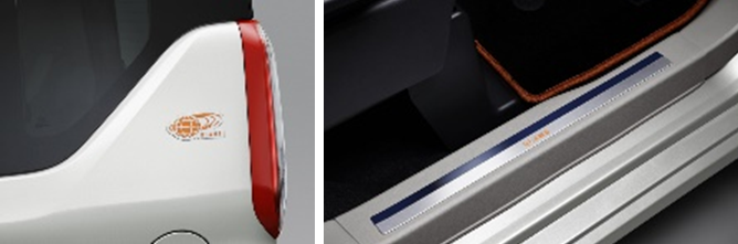 - フロントグリルやドアミラー、アルミホイール、ボディサイド、フロアカーペット*2には、一目でビームスとわかるオレンジや、コンセプトカーのエッセンスであるデニムカラーのネイビーを基調としたさりげないアクセントを取り入れている。