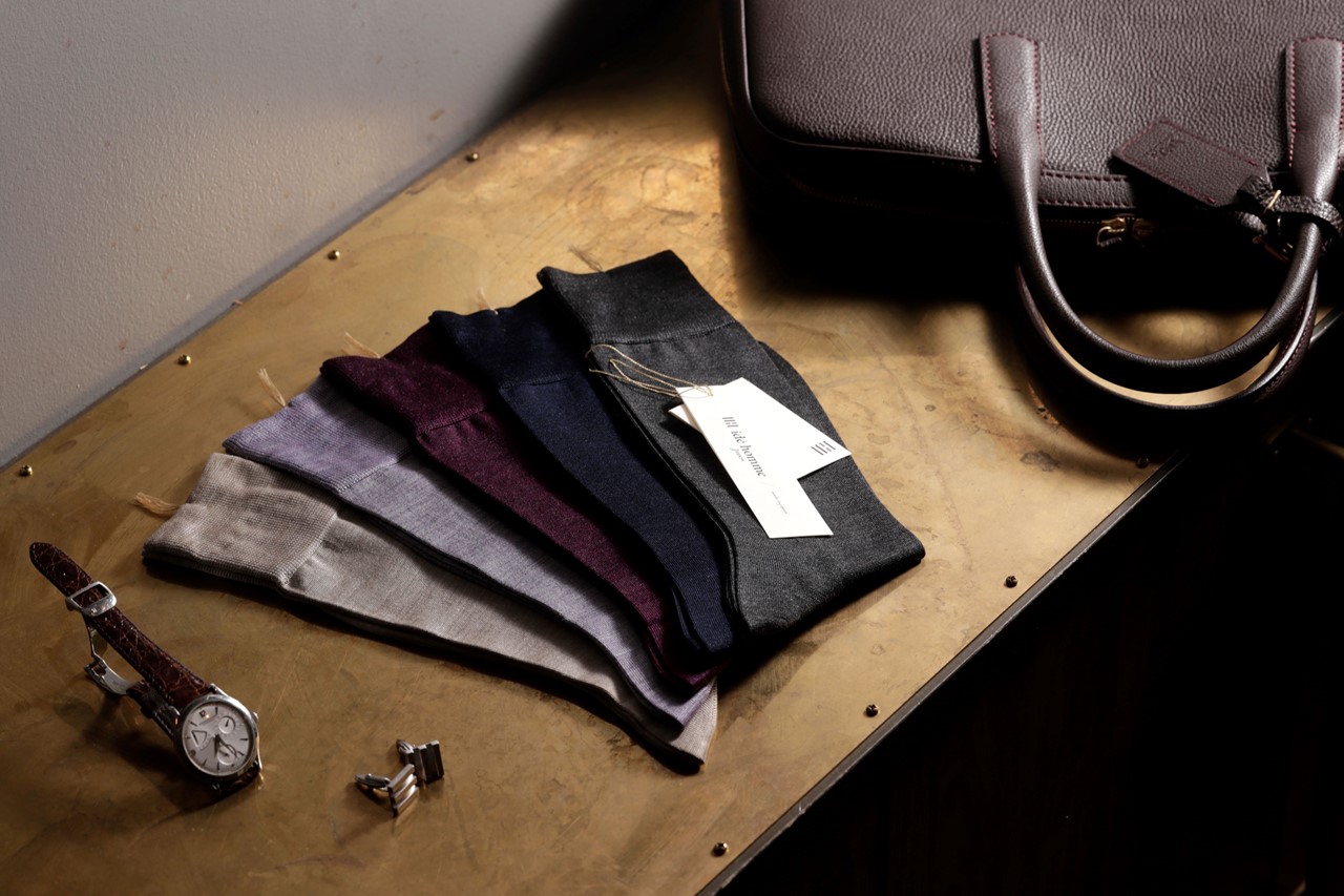 幻の素材と言われるエジプト超長綿「GIZA45」を使用したソックスや、日本が世界に誇るシルクの老舗「長谷川商店」の極細シルクを使用したソックスなど、ブランドを代表する商品が豊富なカラー展開で店頭に並ぶ。桐箱入りのギフトボックスも用意されているのでバレンタインデーに向けてギフト選びにも最適だ。商品が一堂に集まり、直接ご覧いただける機会なので、ぜひ足を運んでみて。